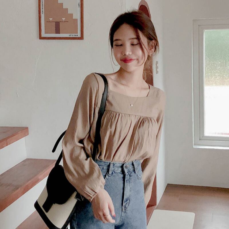 シャツ オータムスタンダードカラースリーブトップス レトロ 秋物 スクウェア ICC_レディース5956458