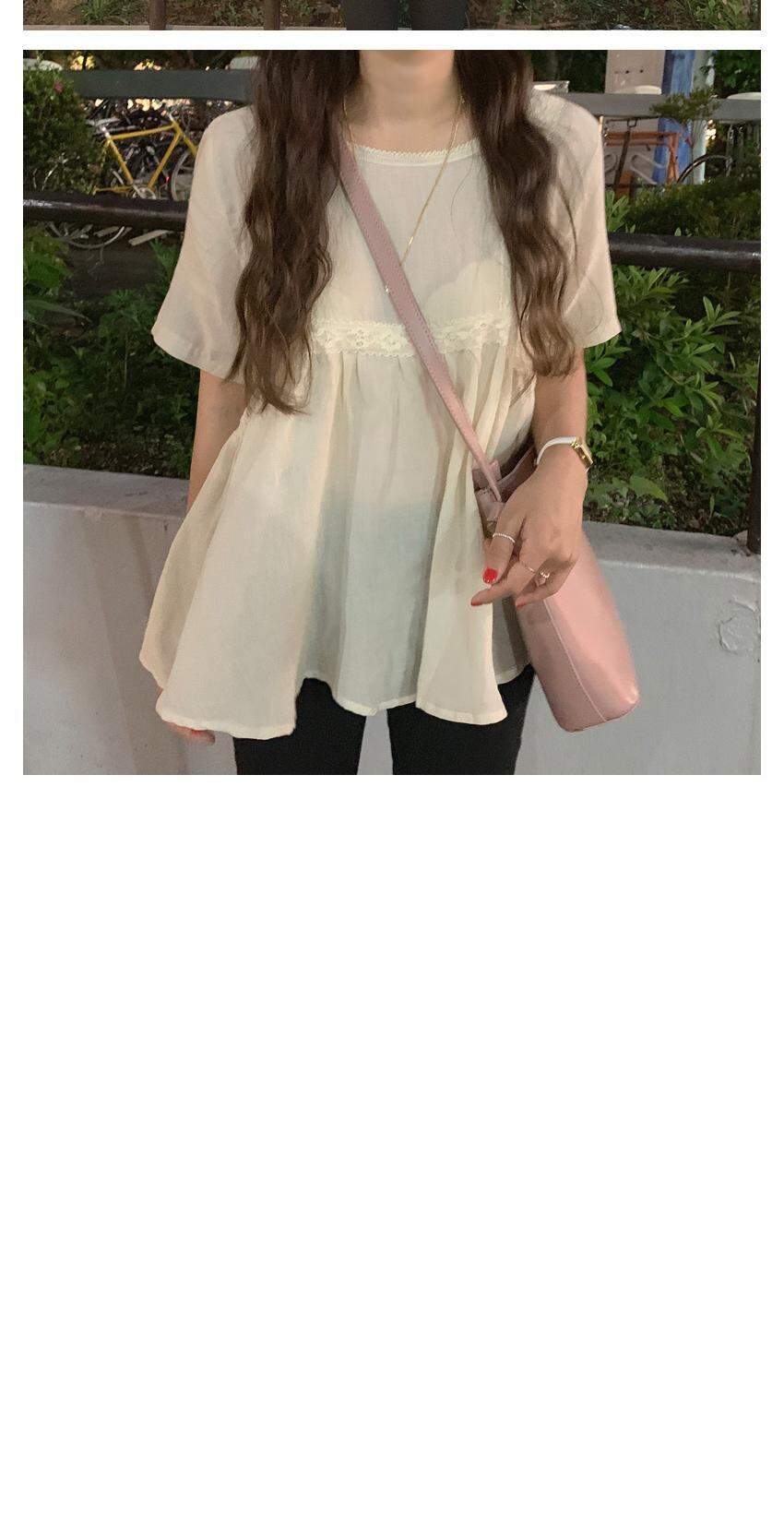 夏の香港の風味レトロシックな妖精ファントップは非常に妖精の綿とリネンのレースの緩い学生のシャツの女性のシャツです コットン サマー 夏物 左左右右_复古定制4176338