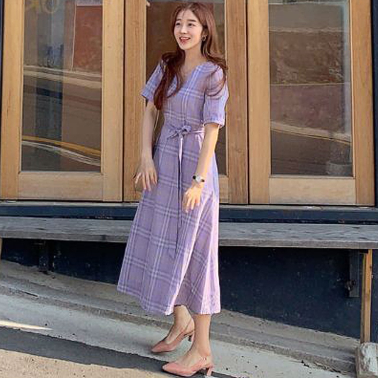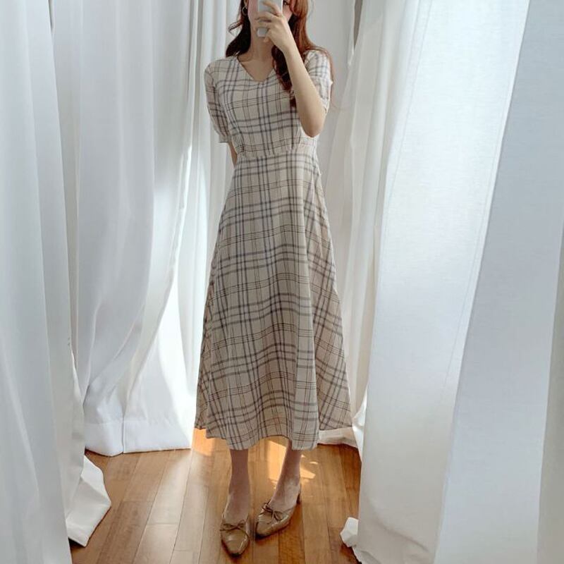 スタンダードスカート サマーウェスト格子柄ドレス レトロ 大人ガーリー スウィート キュート カジュアル 夏物 左左右右4554734