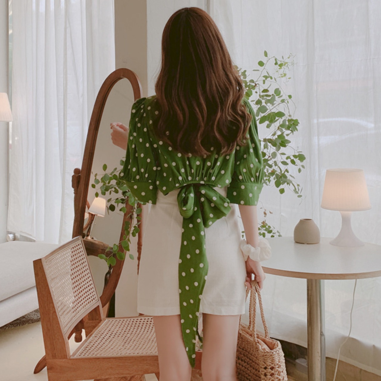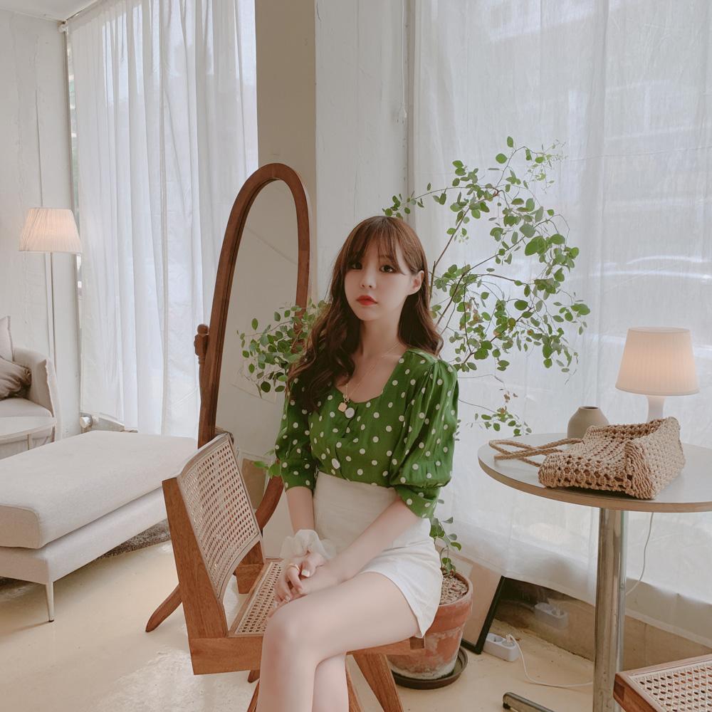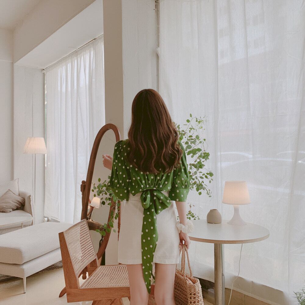 夏香港テイストスキームシャツデザインセンススーパーフェアリーレトロ水玉シャツデザインセンスニッチエインシャツ サマー 夏物 左左右右_复古定制4281938