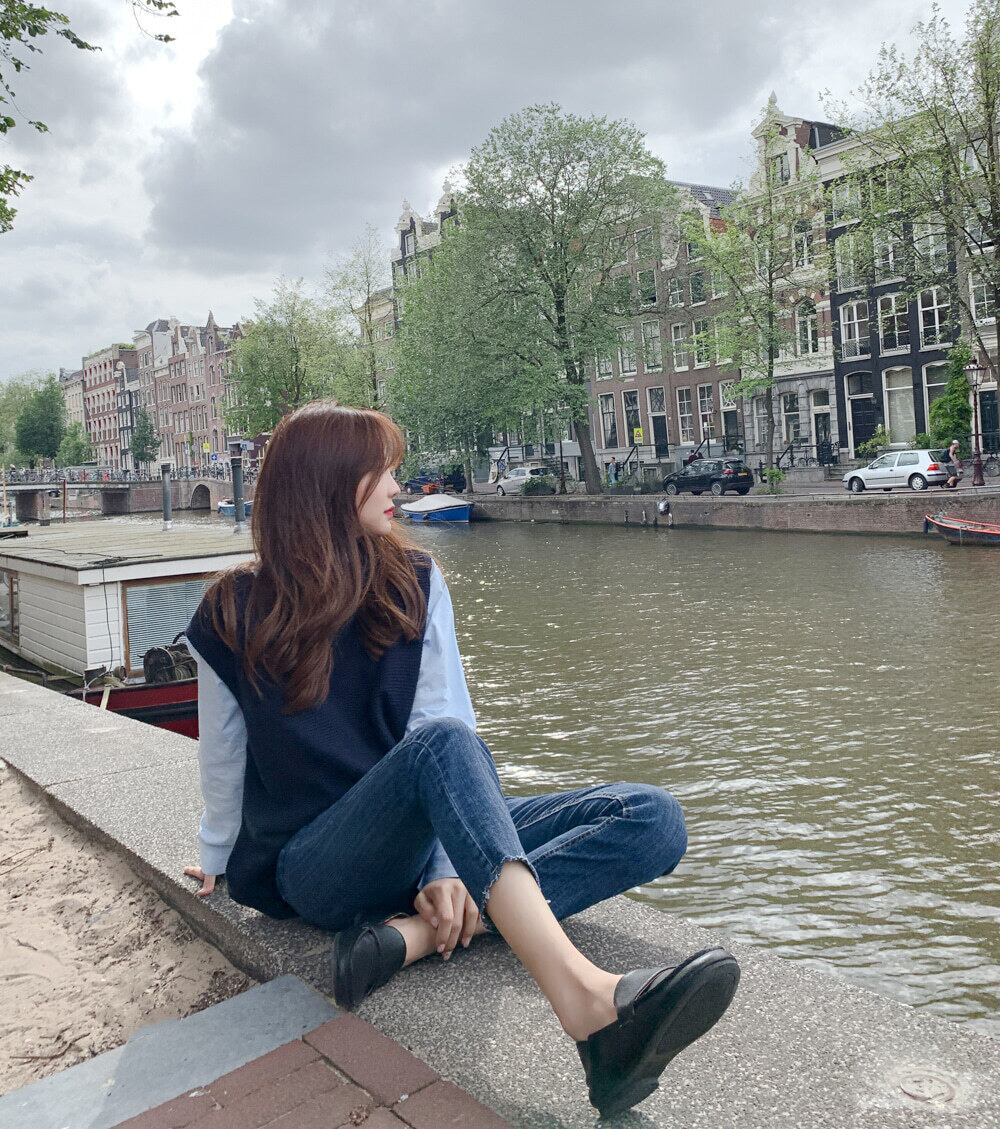 オータムウィンタースタンダードVネックニットソリッド カラースタイル レトロ 秋物 冬物 ソリッドカラー 左左右右7092716