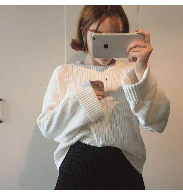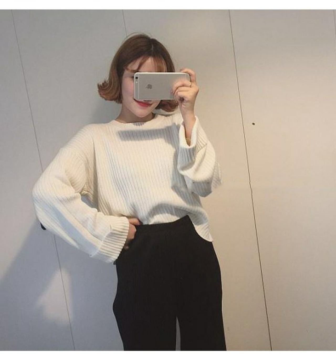 スプリングニットセーター プルオーバー ルーズレッドスリーブショートホワイトスタンダードスタイルトップス レトロ 春物 ICC_レディース5868788