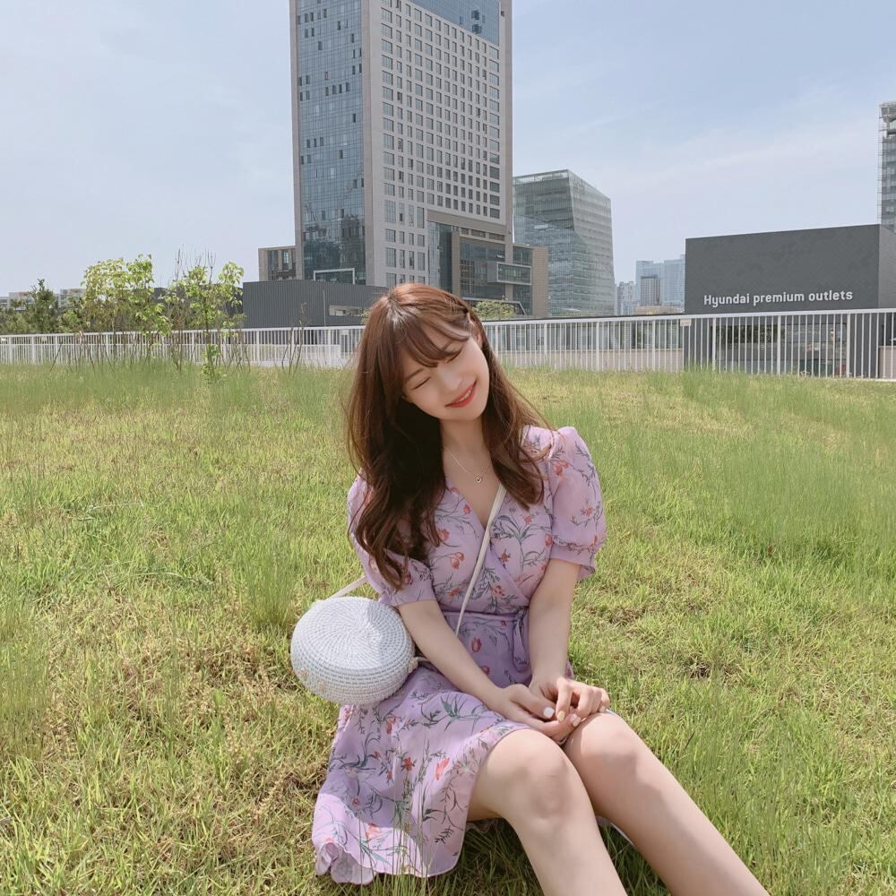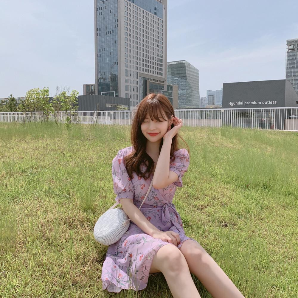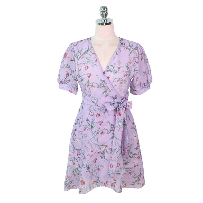 サマースタンダードウェストスカート フローラルシフォンVネックドレス レトロ 夏物 花柄 左左右右4442575