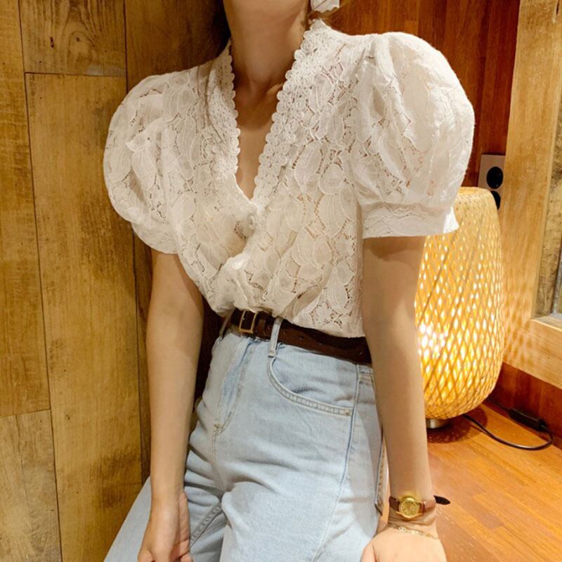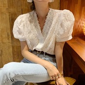 サマーレースVネックスリーブシャツ 夏物 ステッチ ICC_レディース6641603