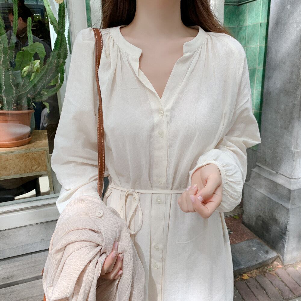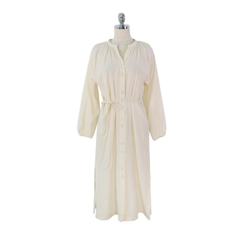 オータムベージュスカート ウェストロングドレス レディース コットン 秋物 フラワーデザイン 左左右右9101201
