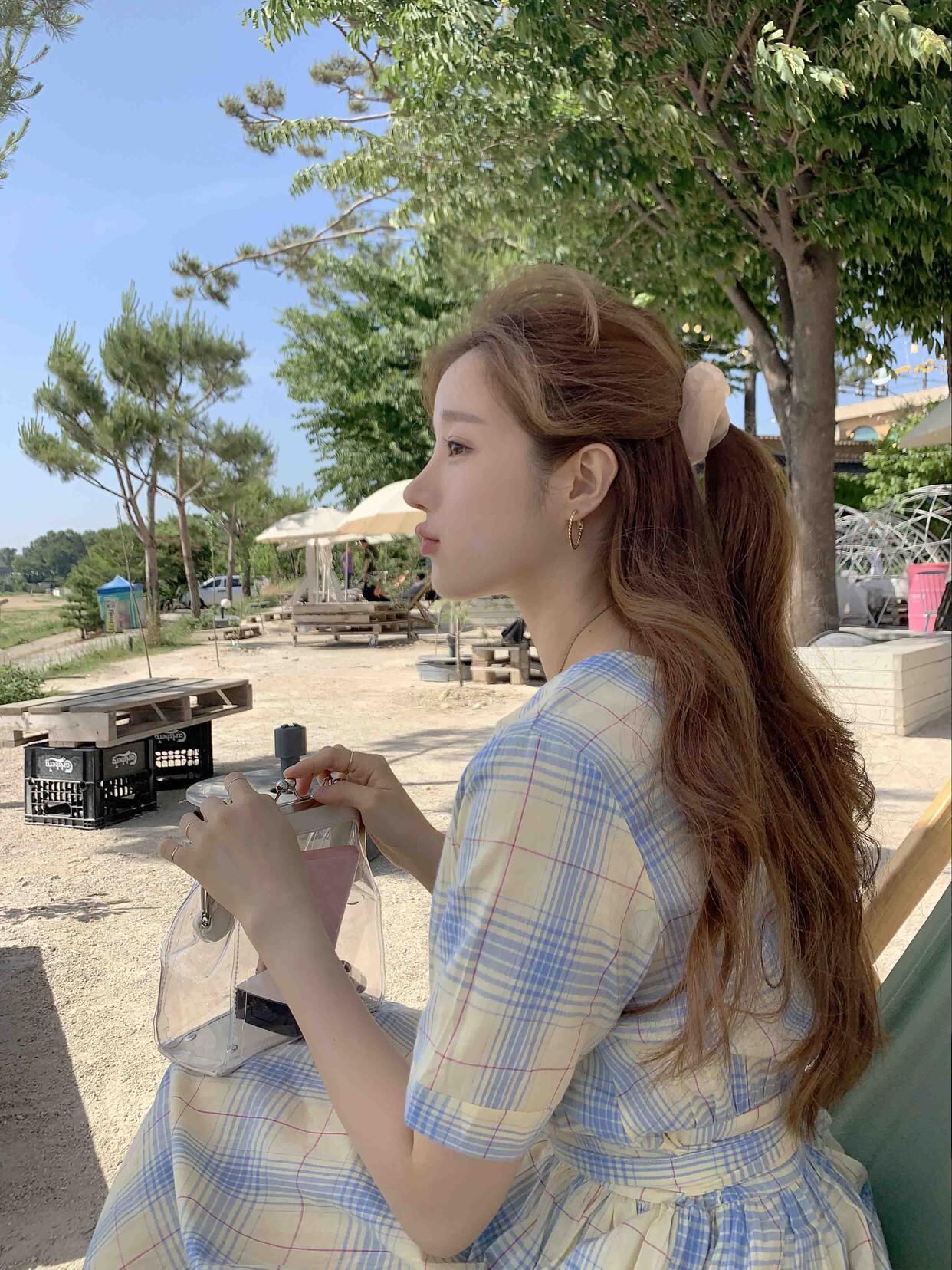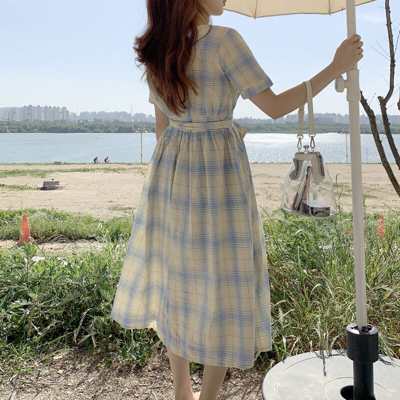 スタンダードスカート ウェストスリム薄手カラー格子柄ドレス サマー レトロ 大人ガーリー スウィート キュート カジュアル 夏物 フラワーデザイン 左左右右4736940