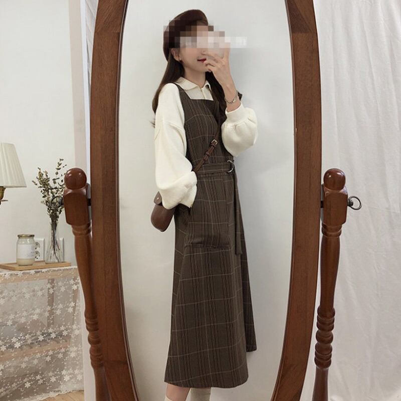 オータムウィンタースタンダードスカート 格子柄ウェストドレス レトロ 秋物 冬物 ICC_レディース4425018