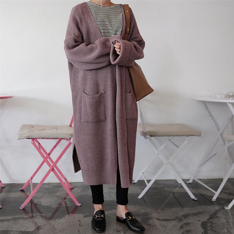 オータムスタイルルーズニットカーディガンスタンダードセーター コート ロング レトロ 秋物 ICC_レディース8199095