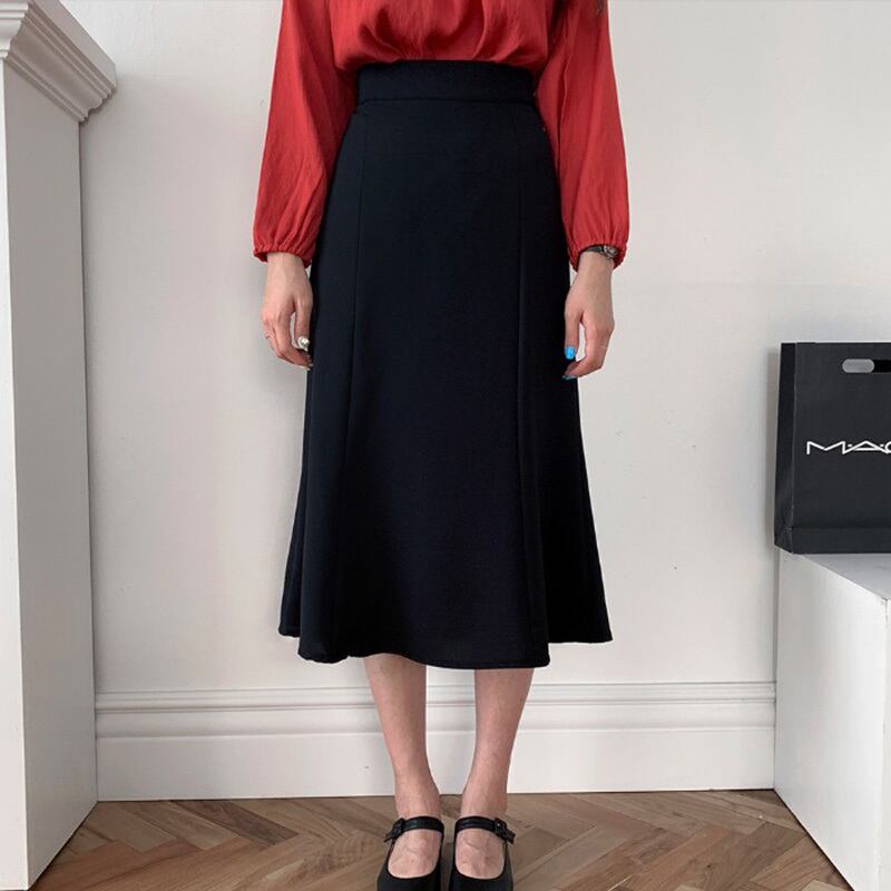 ウェストソリッド カラースカート レディースオータムAラインロング 秋物 ソリッドカラー ICC_レディース3155593