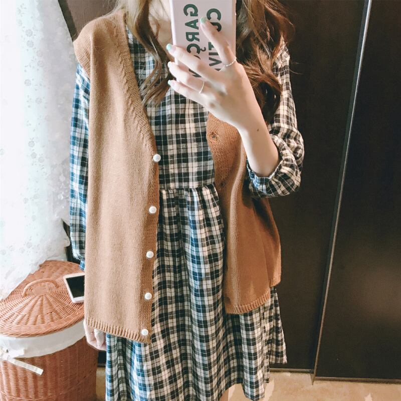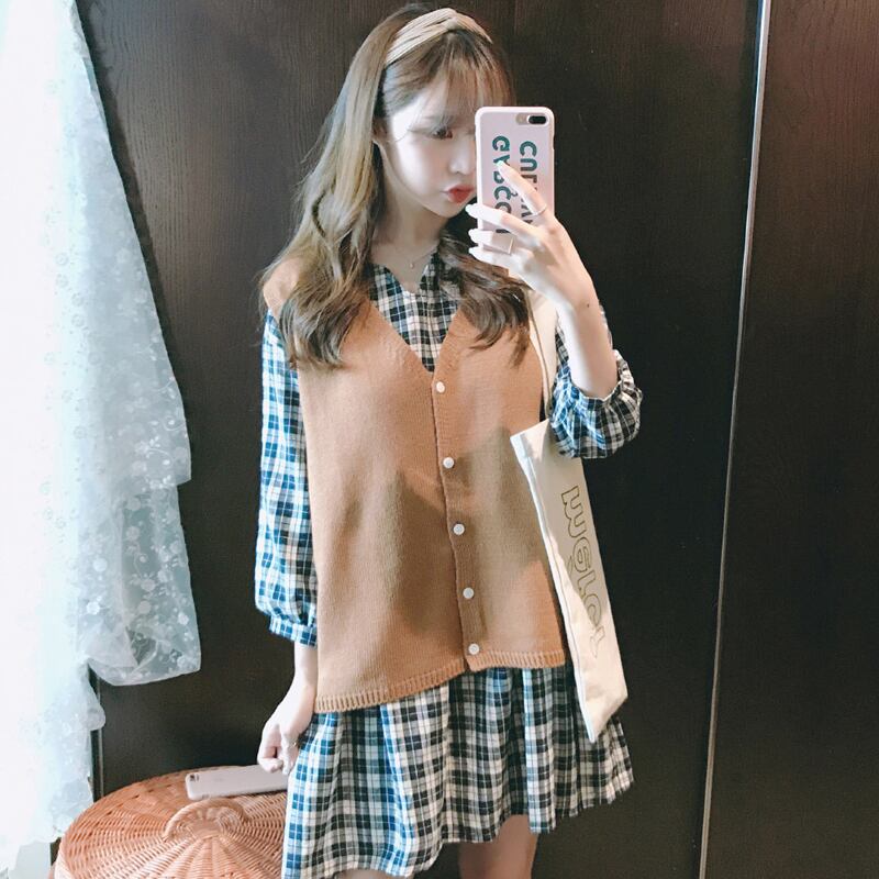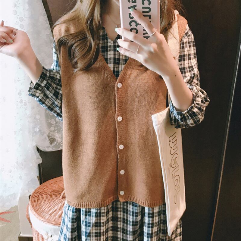 春と秋のレトロな香港の味の大学風のベストの潮の学生の野生のシックなニットのベストのベストの女性 スプリング 春物 オータム 秋物 左左右右_复古定制4319807
