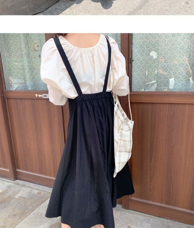 スタンダードラウンドネックルーズ長袖スリーブホワイトシャツ ドレス ロング レトロ Oネック 左左右右5143919