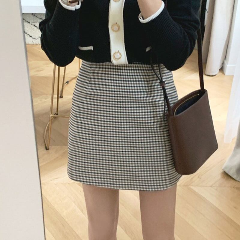 オータムウィンタースタンダードスタイルVネックニットセーター ジャケット ショートスカート レトロ 秋物 冬物 ICC_レディース4486345