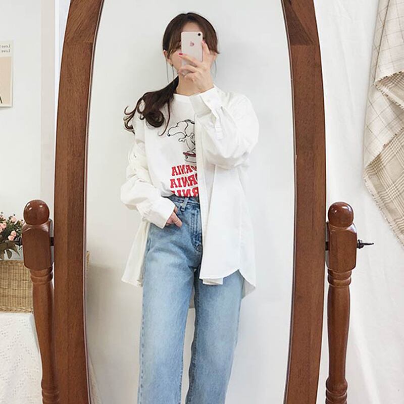 2019レトロ香港シックな白いシャツの女性のデザインセンスニッチトップ野生の学生日焼け止めカーディガン ホワイト 左左右右_复古定制2371082