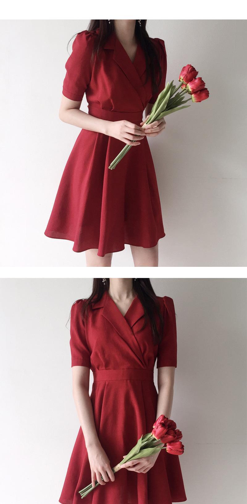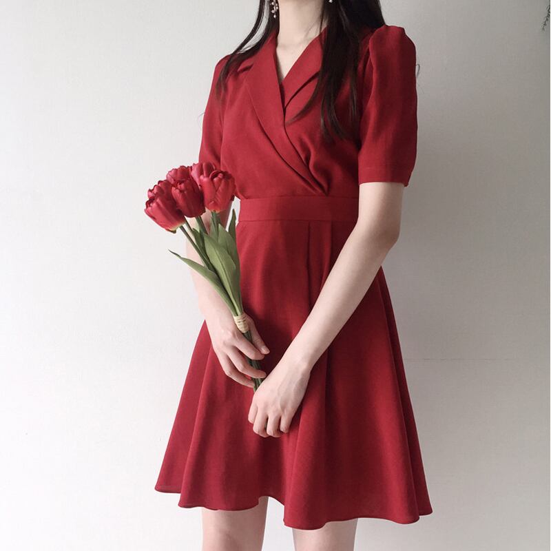 サマースタンダードスカート ハイウェストウェストレッドAラインドレス レトロ 夏物 左左右右7030584