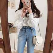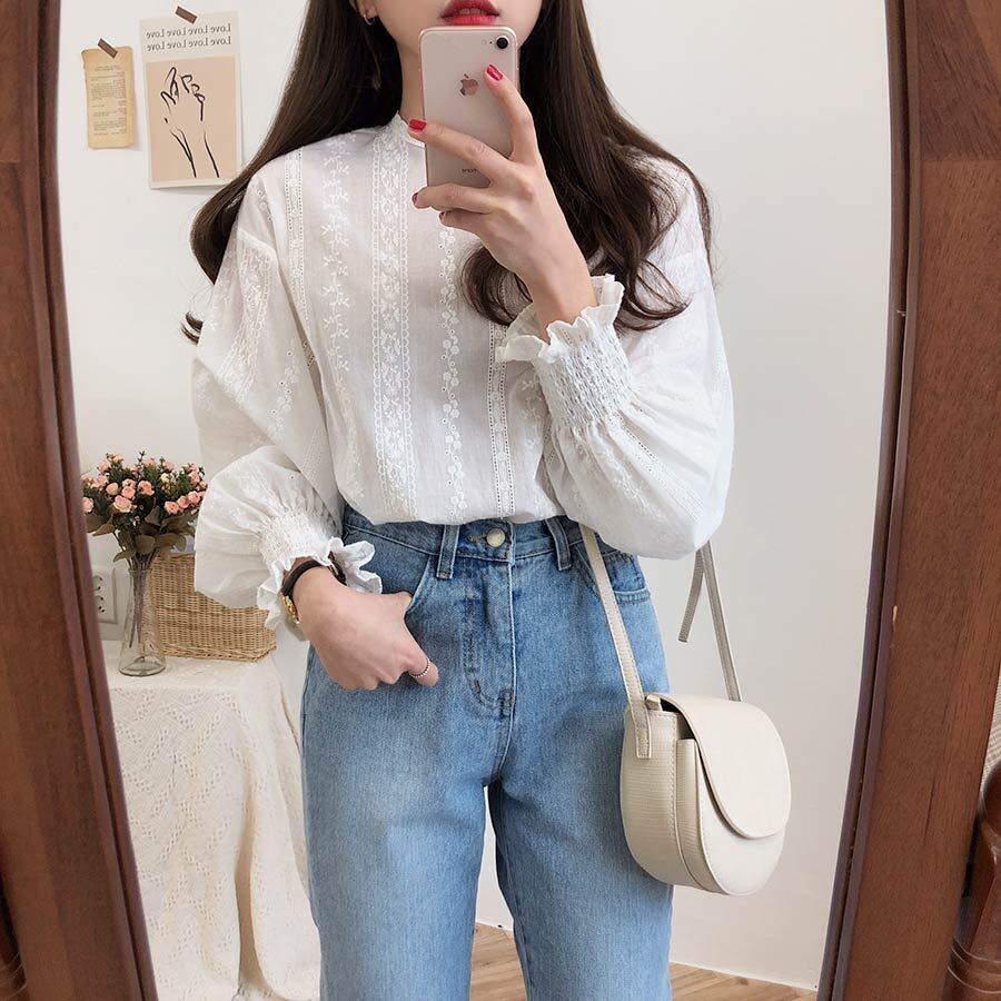 スプリングシャツ トップス 刺繍スタンダードホワイト レトロ 春物 左左右右9994577