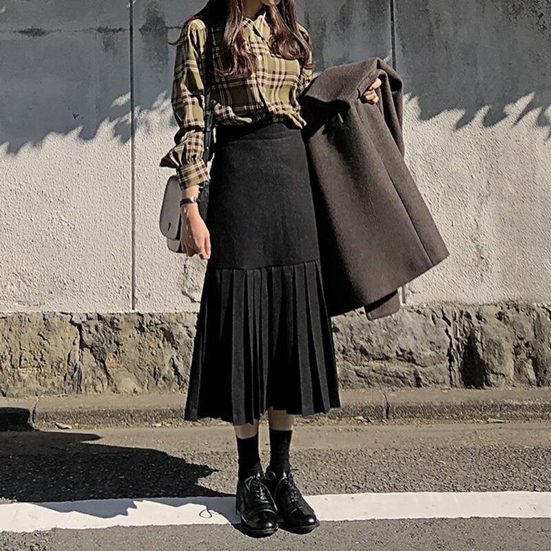 ハイウェストウェストプリーツスカート オータムウィンターレディースAライン かわいい 秋物 冬物 左左右右4968332