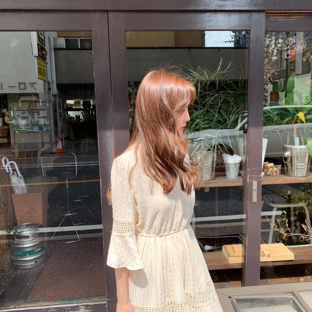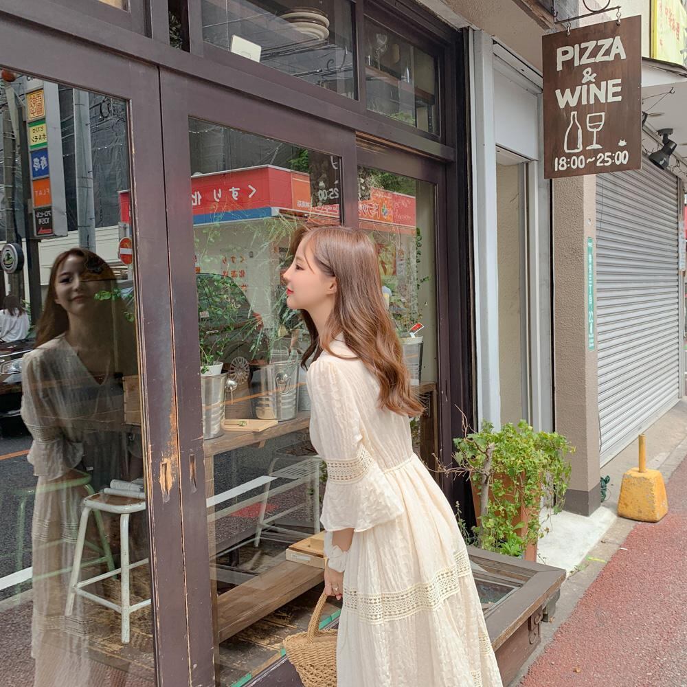 サマースタンダードスカート ロングVネックドレス レトロ 夏物 左左右右2505879