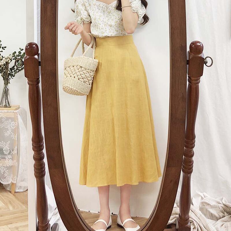 スタンダードスカート ハイウェストウェストリボンAライン レトロ 左左右右7906461