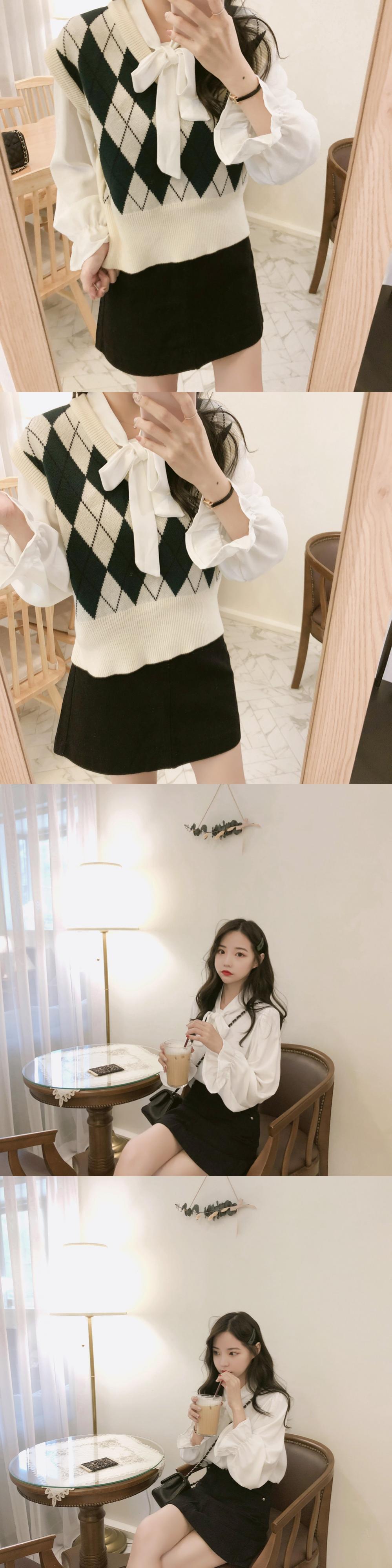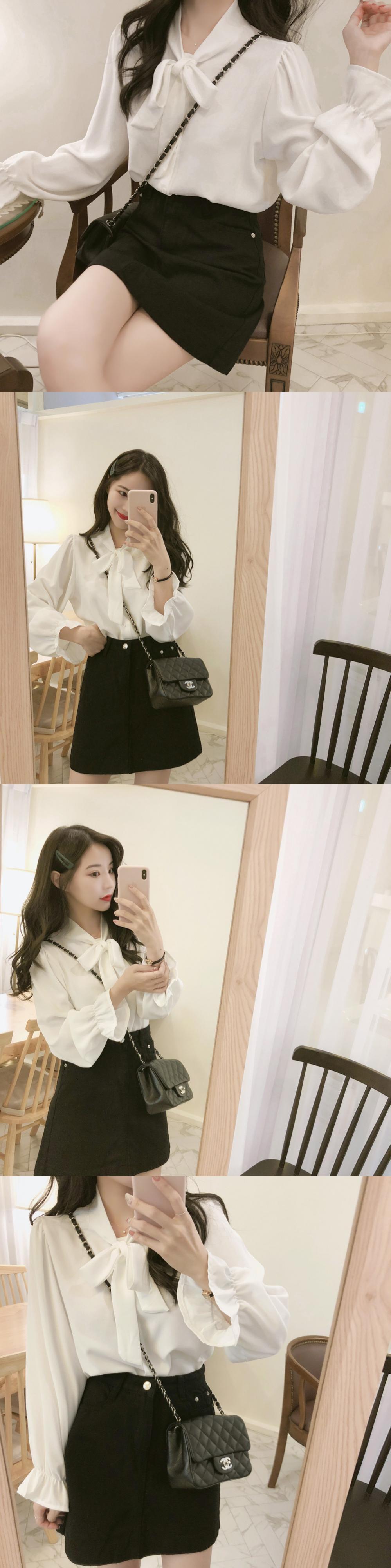 オータムホワイトシャツ スタンダード ロング リボン レトロ 秋物 左左右右6511370