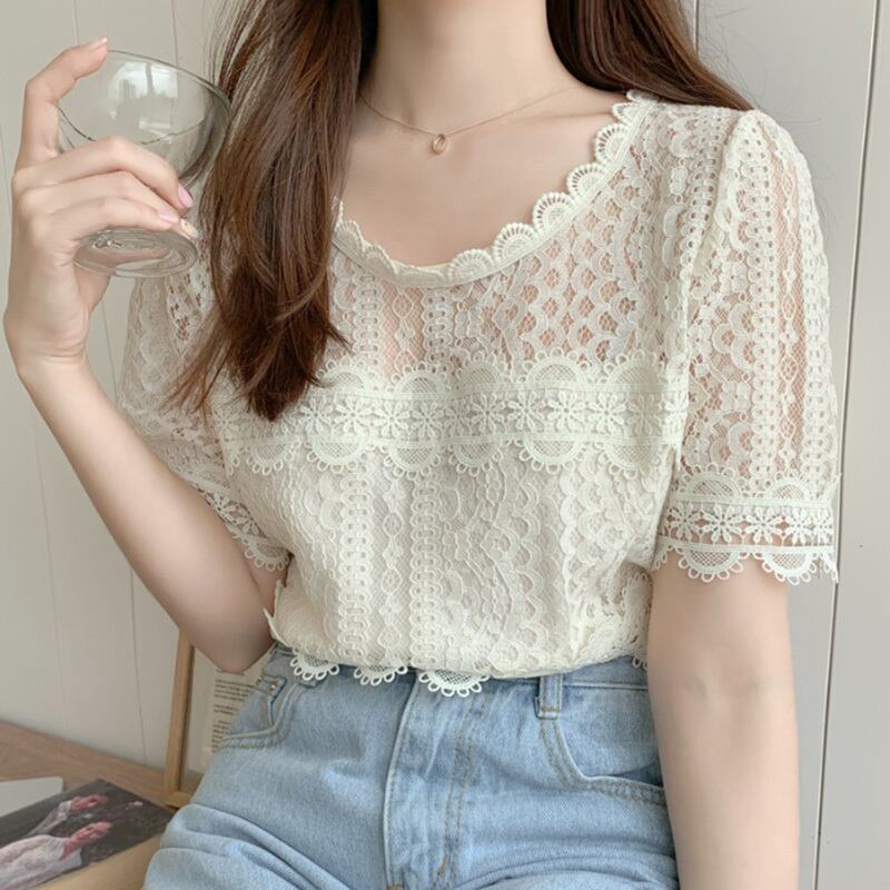 サマーラウンドネックレースシャツ 夏物 Oネック ICC_レディース7522668