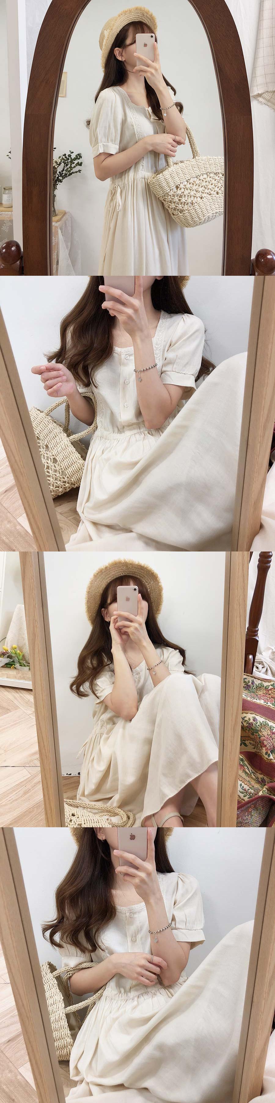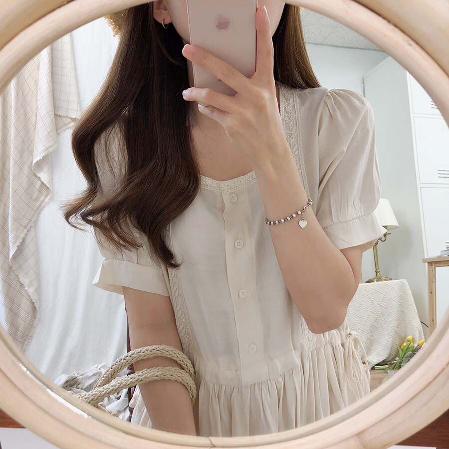 サマースタンダードスカート ウェストロングドレス コットン レトロ 夏物 左左右右0469862