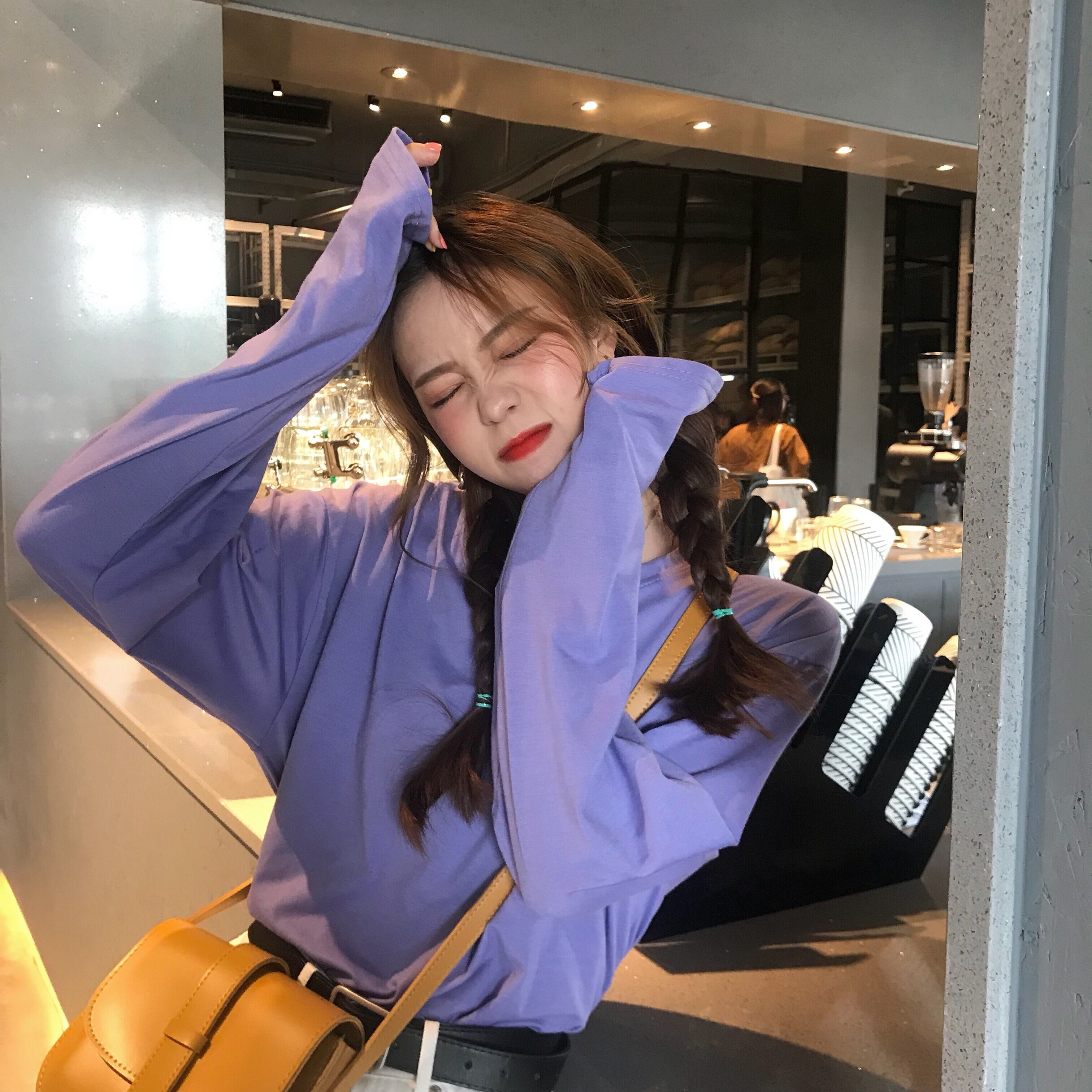 オータムトップス スタイルフードルーズソリッド カラーTシャツ シャツ 薄手 ロング 秋物 ソリッドカラー ICC_レディース0046833