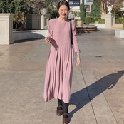 スタンダードプリーツスカート ルーズスプリングオータムドレス レトロ 大人ガーリー スウィート キュート カジュアル 春物 秋物 左左右右6799700