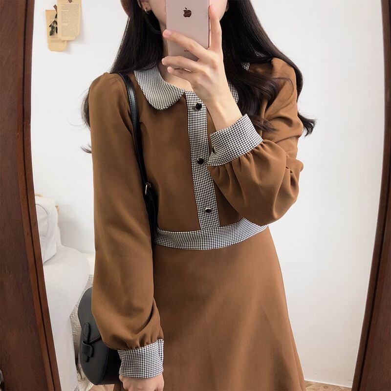 スタンダードスカート カーキショートドレス レトロ フラワーデザイン ステッチ 左左右右2002831