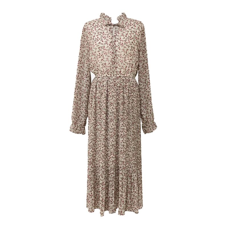 スプリングオータムプリーツスカート ウェストロングフローラルシフォンドレス 春物 秋物 花柄 左左右右_复古定制4626797