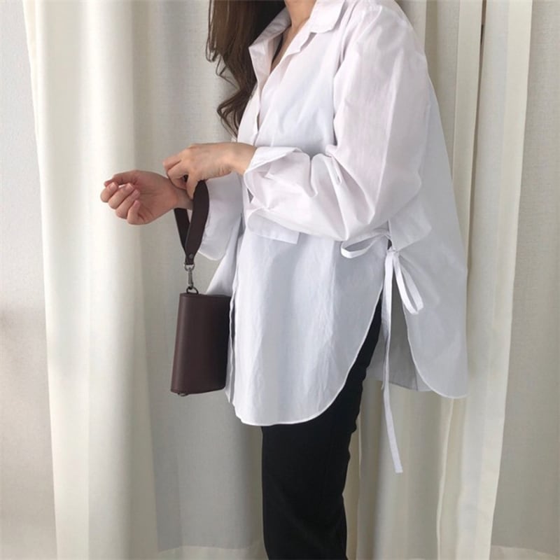 オータムソリッド カラーシャツ レース長袖スリーブカジュアル ロング 秋物 ソリッドカラー ICC_レディース9175594