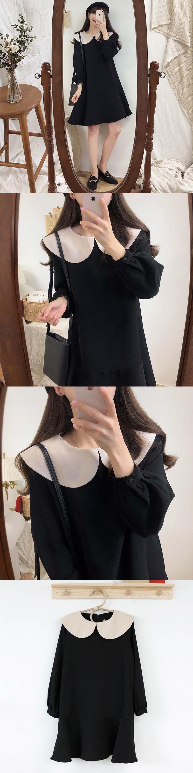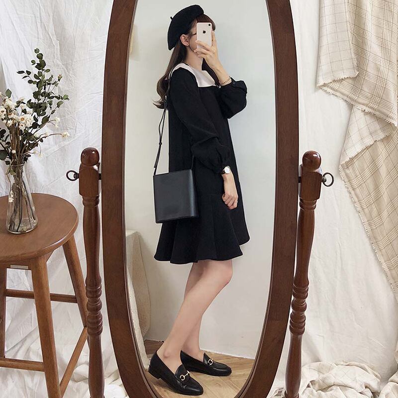 オータムウィンター薄手スタンダードスカート カラーソリッド ドレス レトロ 秋物 冬物 ソリッドカラー フラワーデザイン ステッチ 左左右右4525150