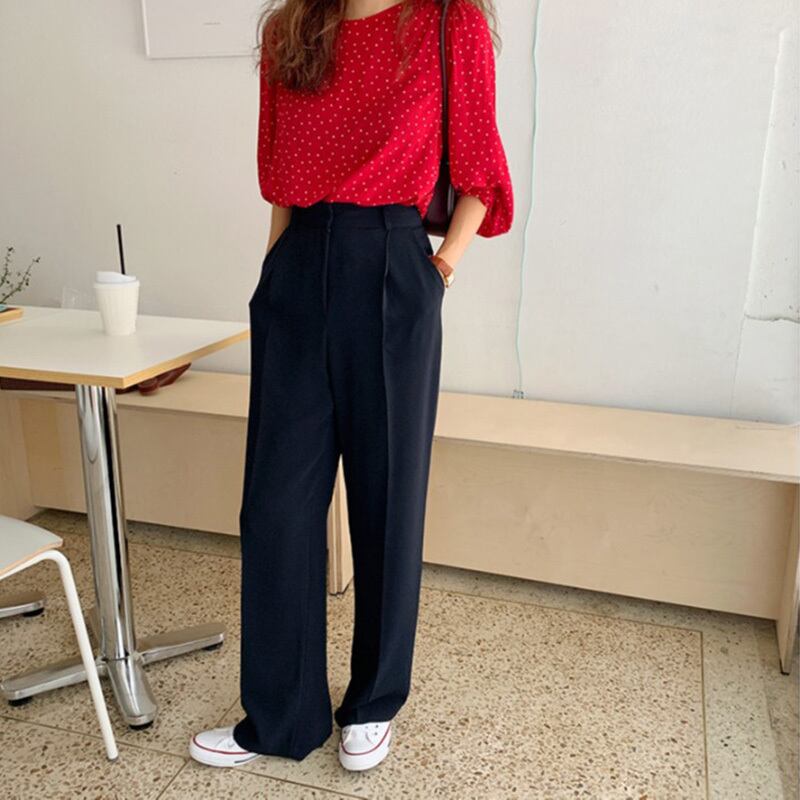 水玉シャツ ソリッド カラールーズハイウェストウェスト ロング 大人ガーリー スウィート キュート カジュアル ソリッドカラー ICC_レディース9986476