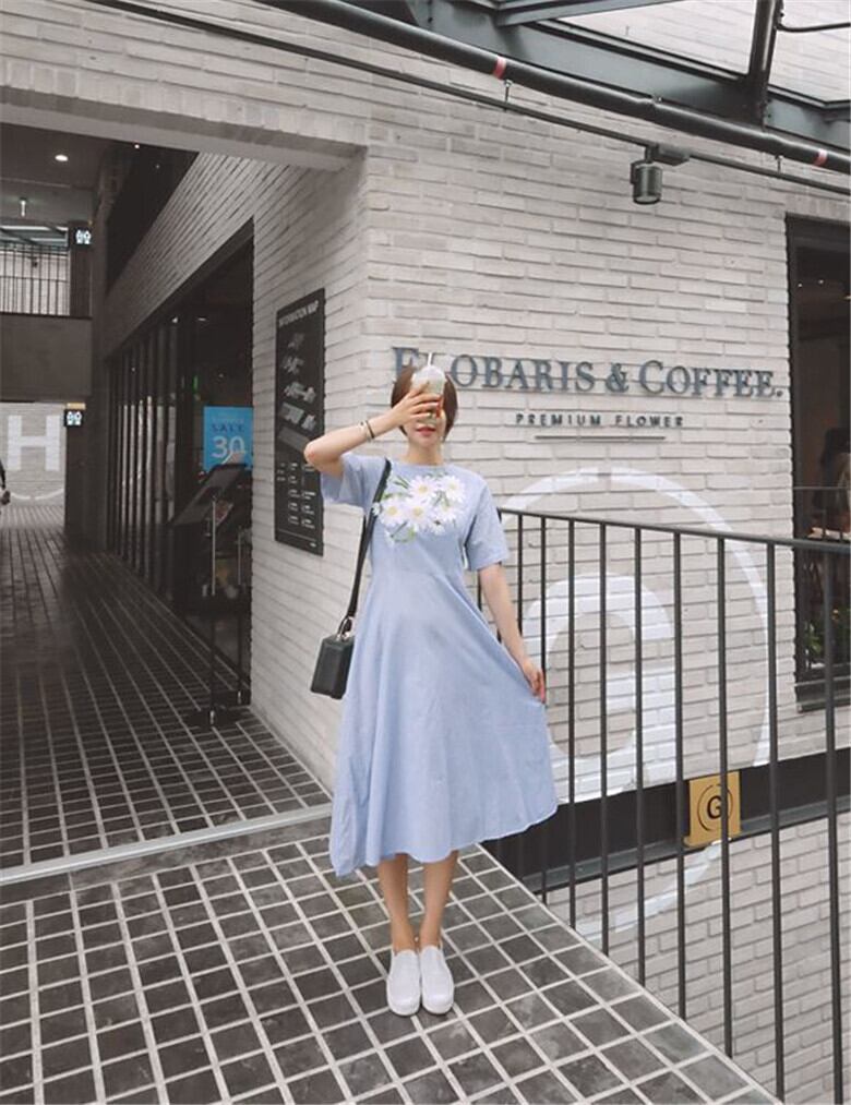 刺繍スタンダードスカート ロングストライプスタイルドレス サマー レトロ 夏物 左左右右4010829