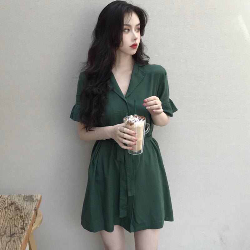 サマースタンダードスタイルスカート 薄手カラーショートリボンドレス レトロ 夏物 フラワーデザイン 左左右右1740341