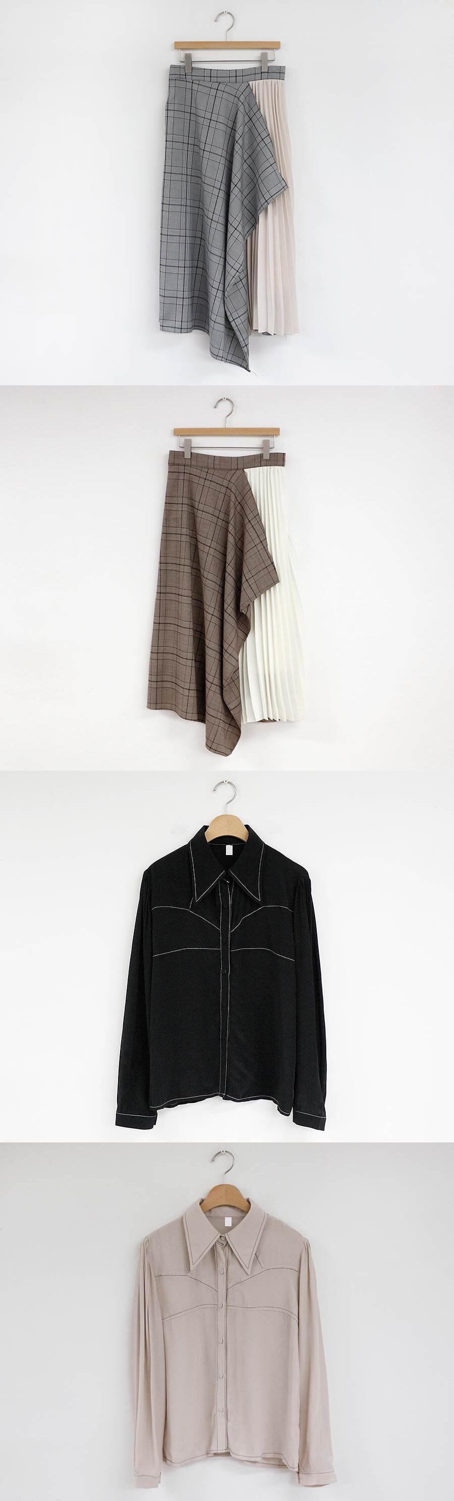 色:カーキトップ,黒のスカート(ベルト付き),コーヒースカート(ベルト付き),ブラックトップ