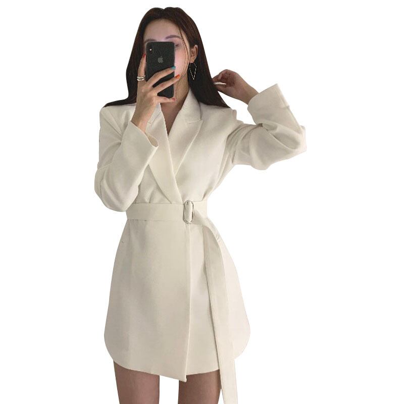 オータムスタンダードソリッド カラースリムバンドウェスト長袖スリーブジャケット ロング レトロ 秋物 ソリッドカラー ICC_レディース1620011