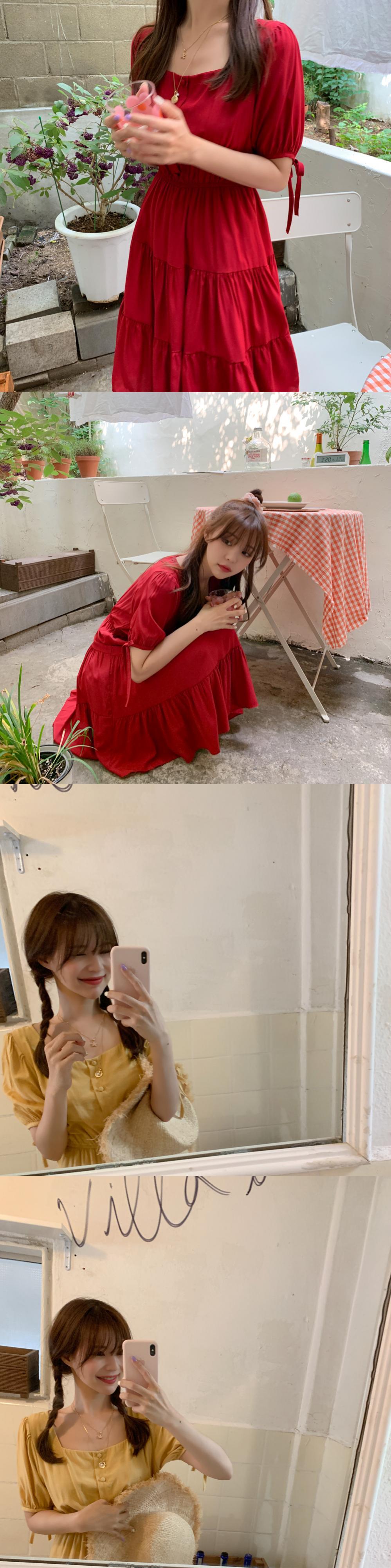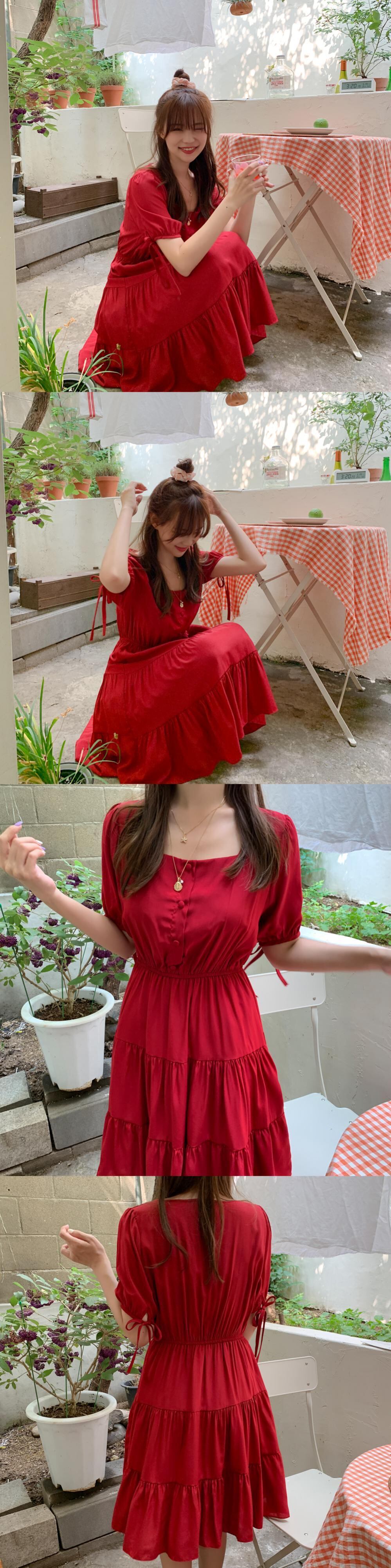 サマースタンダードスカート ウェストレッドカラードレス ロング レトロ 夏物 スクウェア 左左右右2375392