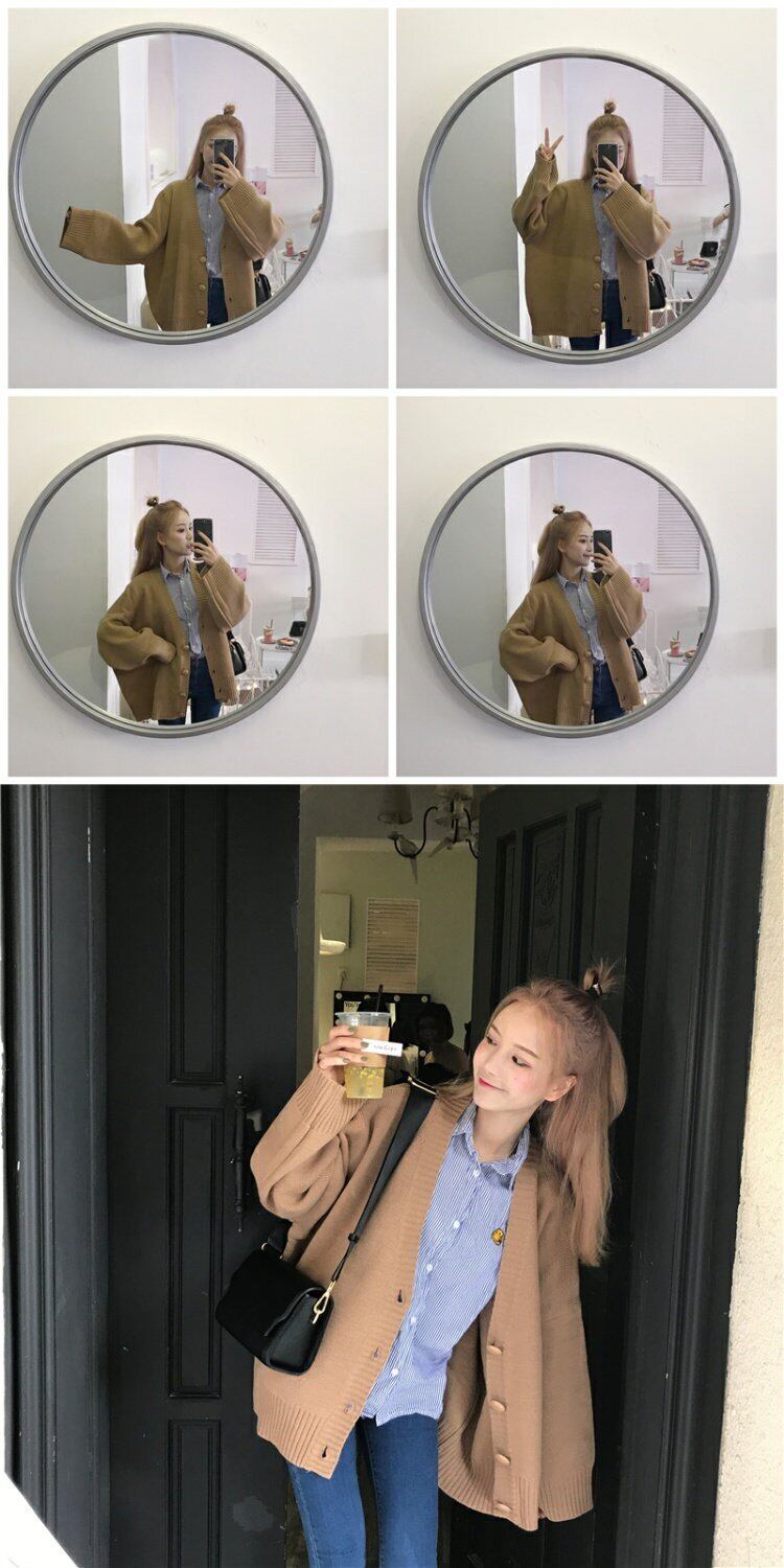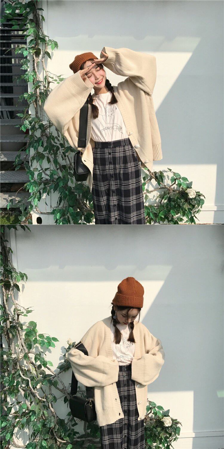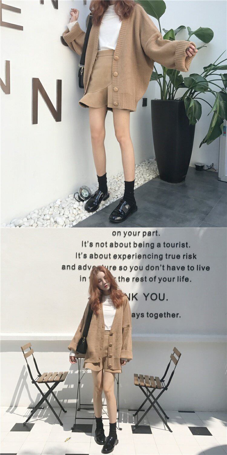 ニットカーディガンオータムスタンダードルーズレッドセーター ジャケット レトロ 秋物 ICC_レディース5125657