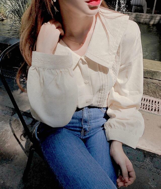オータムシャツ レースカラールーズ薄手 ロング 秋物 ICC_レディース7633183