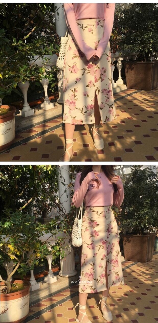 スプリングハイウェストウェストスカート Flowerデザイン プリント柄スリム 大人ガーリー スウィート キュート カジュアル 春物 フラワーデザイン 左左右右2376979