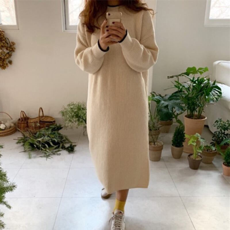 スカート ロングオータムルーズニットドレス セーター 秋物 ICC_レディース5918558