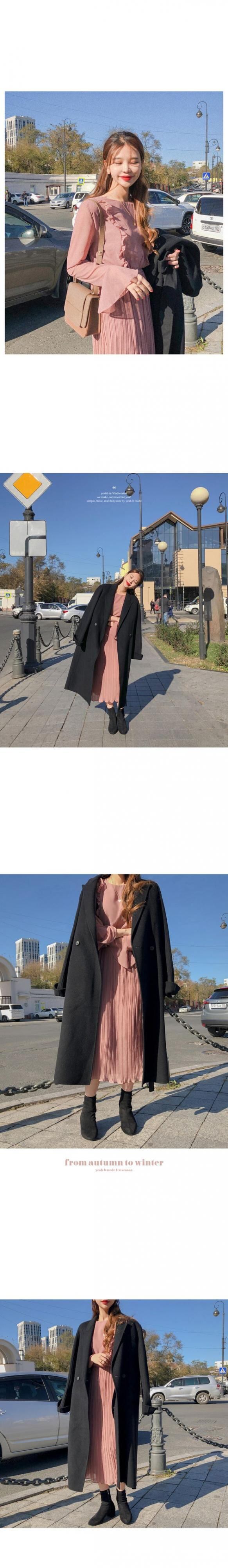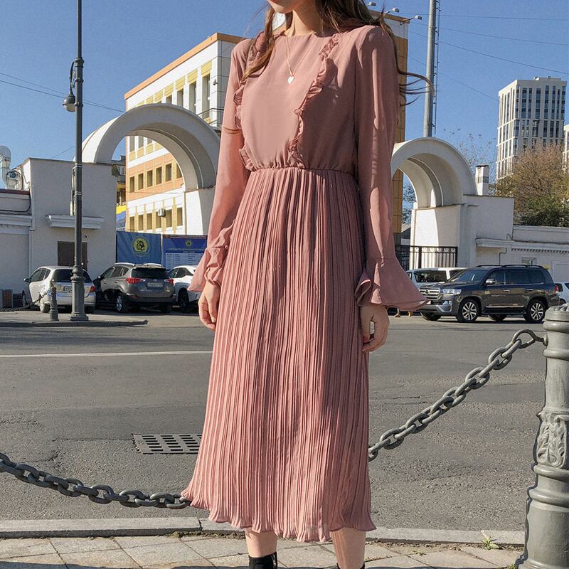 スプリングプリーツスカート ドレス ロングウェストソリッド カラーシフォン 春物 ソリッドカラー 左左右右8327336