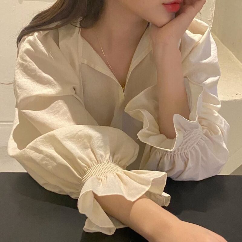 スプリングスタンダードカラールーズスリーブシャツ レディース レトロ 春物 ICC_レディース7043887