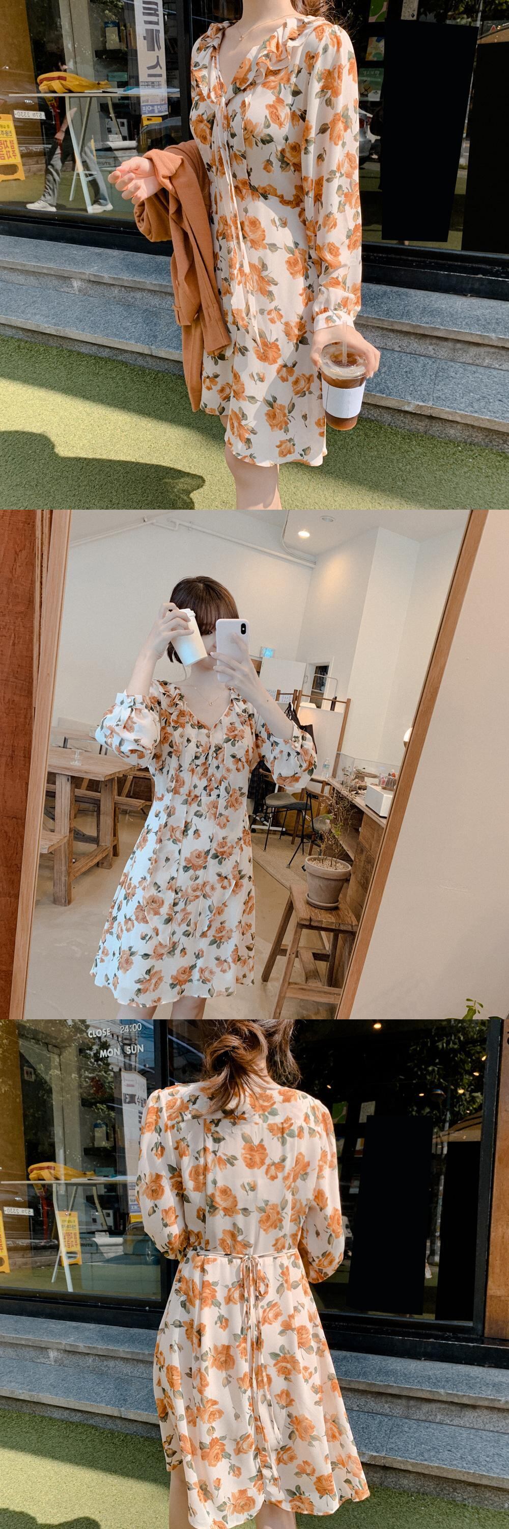 スタンダードスカート ウェストフローラルVネックシフォンドレス レトロ 花柄 左左右右6006880