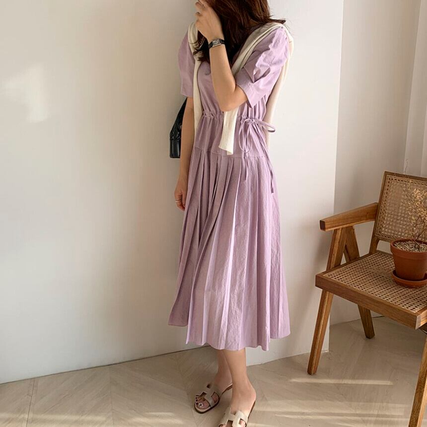 サマープリーツスカート ロングウェストドレス 大人ガーリー スウィート キュート カジュアル 夏物 左左右右3495524