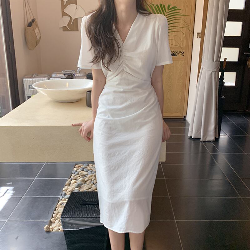 サマースタンダードスカート ロングウェスト薄手プリーツドレス レディース レトロ 夏物 フラワーデザイン 左左右右9401836