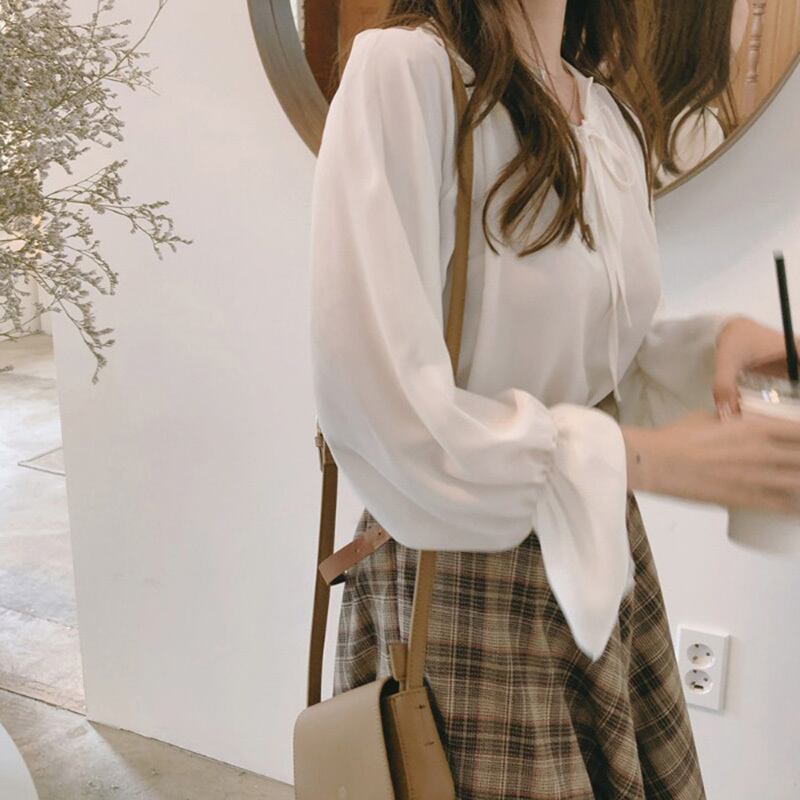 オータムハートルーズホワイトシフォンシャツ トップス ベルスリーブ 秋物 ICC_レディース1649946