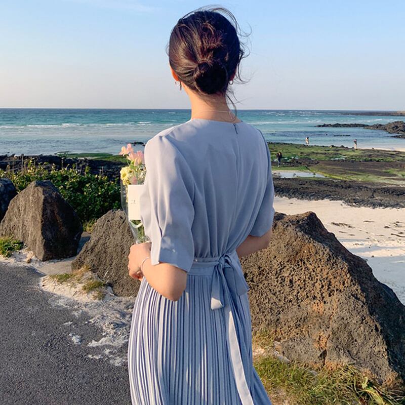 スタンダードスカート ロング薄手シフォンプリーツウェストドレス レトロ 左左右右5672023