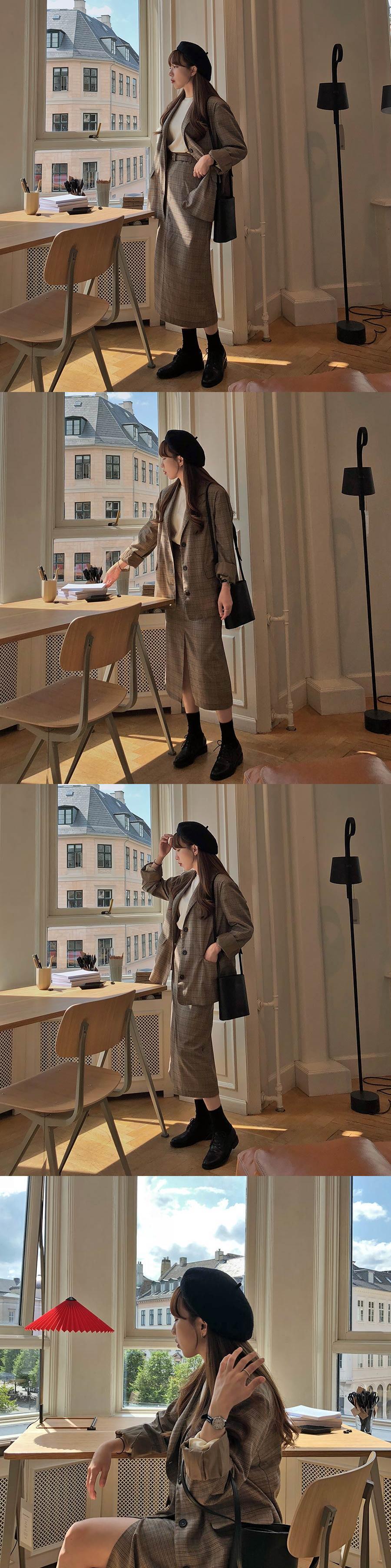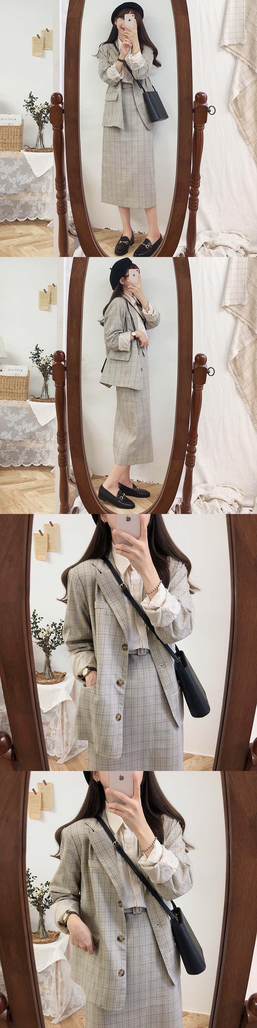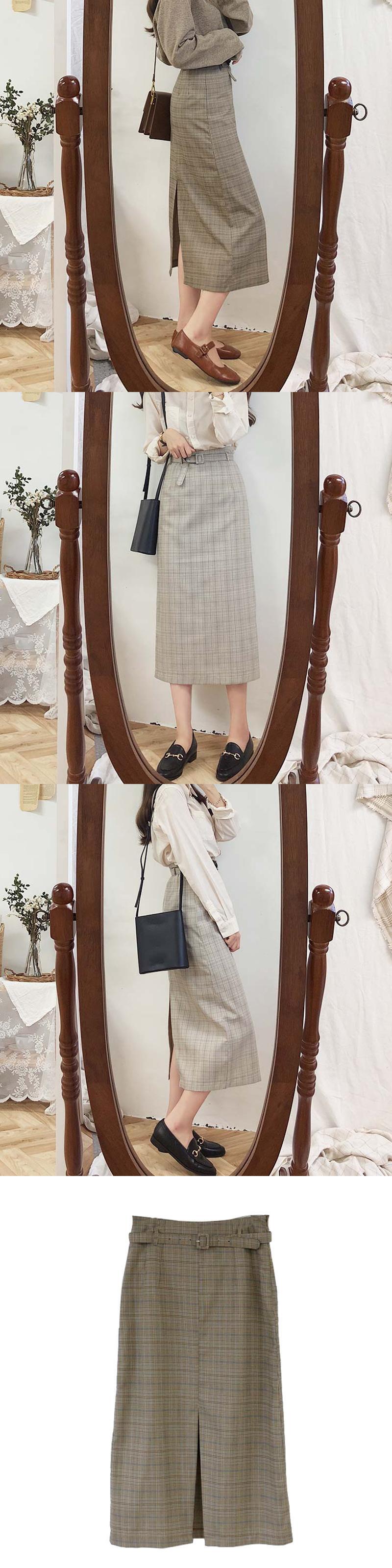 スタンダードオータム格子柄ハイウェストウェストスカート ロング薄手 レトロ 秋物 左左右右6894439