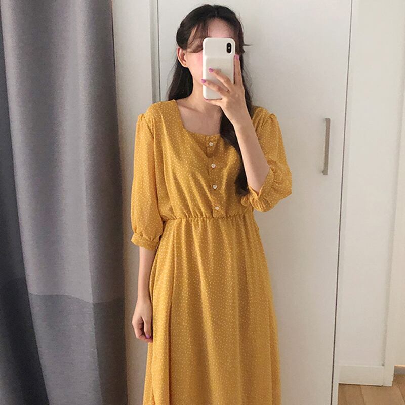 スタンダードスカート サマースタイルロング水玉シフォンドレス レトロ 夏物 左左右右_复古定制4776508